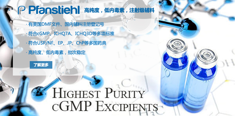 “熱烈祝賀Pfanstiehl的注射級甘氨酸Glycine(G-140)喜獲CDE登記號F20250000403, 這是Pfanstiehl產品獲得的第18個CDE登記號!”甘氨酸在醫藥輔料制劑中應用廣泛,, 可作為緩沖劑,增溶劑,穩定劑等,具有諸多優勢。Pfanstiehl秉承一貫高品質理念,為滿足全球生物制藥行業對于高品質甘氨酸的需求,隆重推出的注射級甘氨酸Glycine (G-140), 具有超高純度,超低內毒素,超低金屬殘留的特點,單獨檢測29種金屬離子,并且新增DNA,RNA,DNA酶,RNA酶和脂肪酶,亞硝酸鹽等多項質量指標的檢測,符合多國藥典規定(USP, EP, BP, JPE, ChP),可用于生物治療性藥物和疫苗的生產。產品信息:· 產品名稱:Glycine, High Purity, Low Endotoxin, Low Metals, USP, EP, BP, JPE, ChP (G-140)· 中文名稱:甘氨酸· 分子式:C2H5NO2· 分子量:75.07 g / mol· CAS號:56-40-6· 產品貨號:G-140產品特點: · 超高純度,超低內毒素,超低微生物含量,超低金屬雜質殘留· 質量指標新增DNA,RNA,DNA酶,RNA酶,脂肪酶和亞硝酸鹽檢測· 符合多國藥典:USP, EP, BP, JPE, ChP· 符合ICH Q3D標準· 符合GMP標準· 已獲DMF和CDE登記號 產品應用:· 緩沖劑· 穩定劑· 增溶劑如果您對Pfanstiehl注射級別Glycine G-140感興趣,歡迎聯系Pfanstiehl 中國區代理商北京西美杰科技有限公司獲得如下詳細的產品概況說明文件和測試樣品。Pfanstiehl Inc.最新產品系列如下,歡迎聯系北京西美杰科技有限公司獲取100g裝免費樣品。北京西美杰科技有限公司為Pfanstiehl中國代理,為客戶提供完善的技術支持與售后服務。歡迎撥打西美杰客服電話400-050-4006或者登陸網站www_xmjsci_com.lzrsh.cn了解更多信息。 更多>